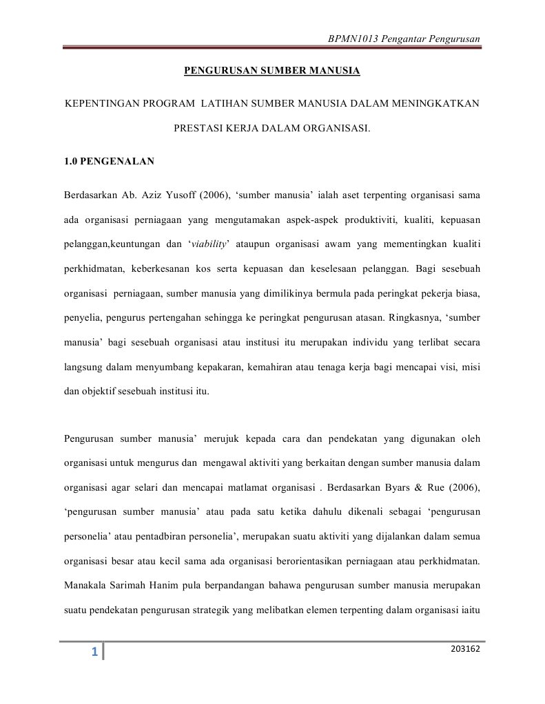 Kepentingan Program Latihan Sumber Manusia Dalam Meningkatkan Prestasi Kerja Dalam Organisasi Pdf